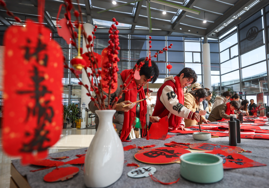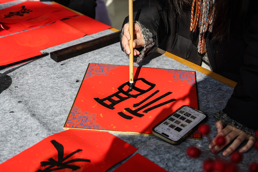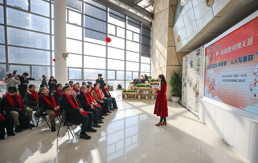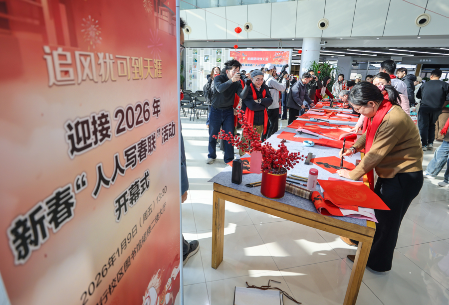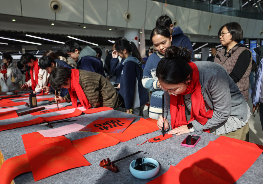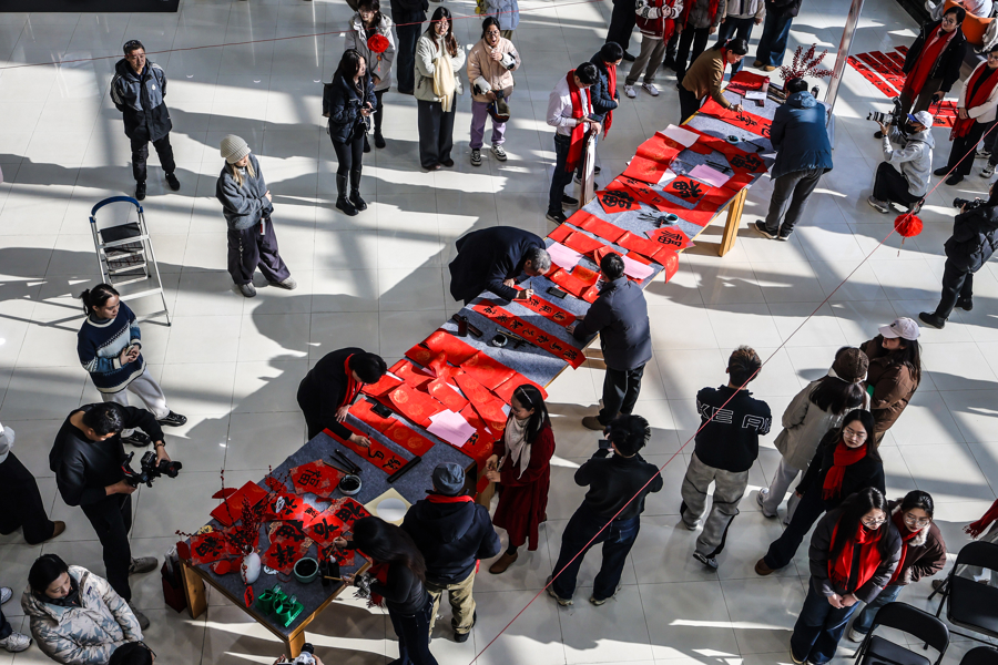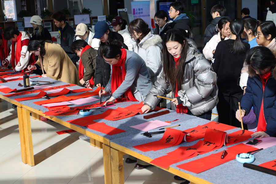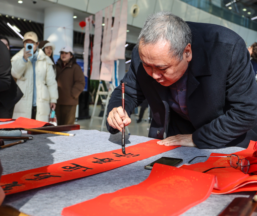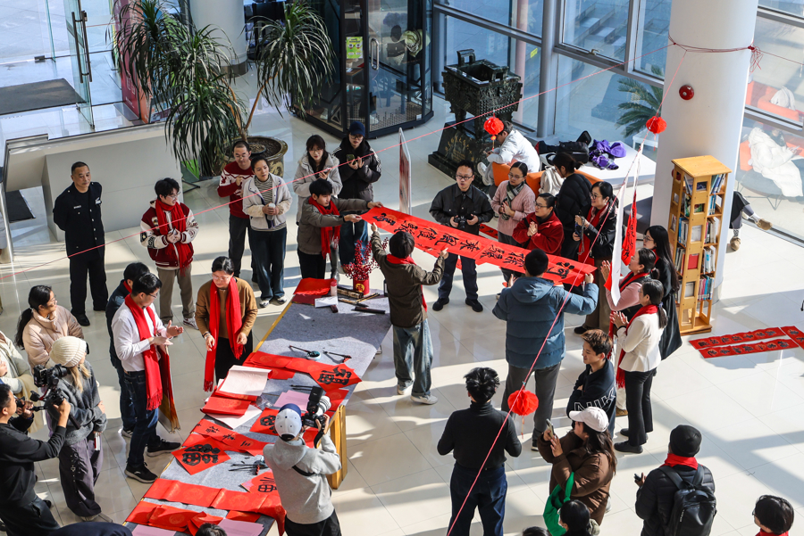 翰墨飘香传雅韵,暖意融融迎新春。1月9日下午,华东师范大学一年一度的传统文化活动“人人写春联”在华闵行校区图书馆二楼大厅正式启动。师生们铺展红纸、研磨挥毫,在横竖撇捺间体悟文化之美,以笔墨传递奋进力量、送出新春祝福。