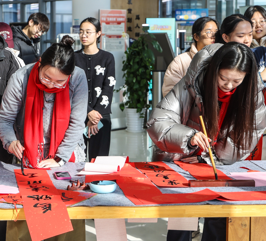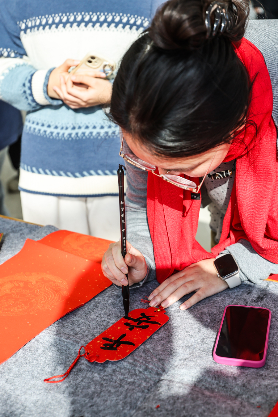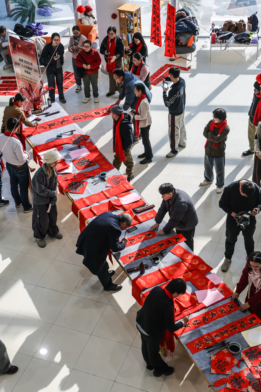现场被鲜艳的大红色渲染得喜庆而热烈,大家沉浸在墨香和笔锋之间,期待即将到来的2026农历马年。方寸纸墨之间,寄托着同学们和老师们对个人生活的美好祈愿,也有对学校发展、国家繁荣的赤诚祝福。
